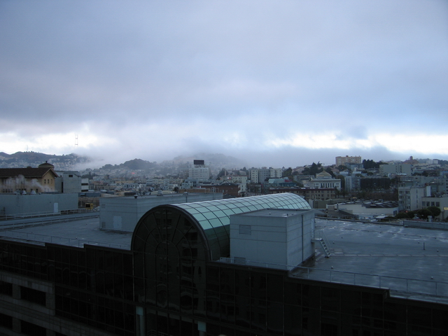 This is the view from Chris' penthouse apartment on the 11th floor, morning mist in the hills.