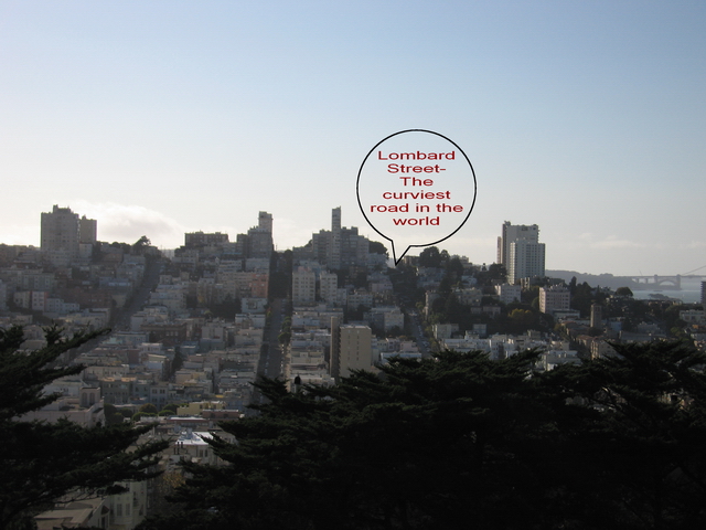 The veiw from the top of Telegraph Hill From here we see Lombard Street, the world's curviest road.