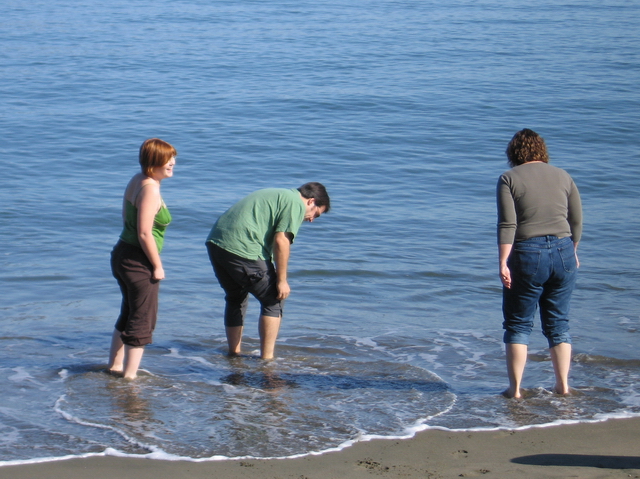 The Golden Gate Bridge. We have to wade in the Pacific Ocean.